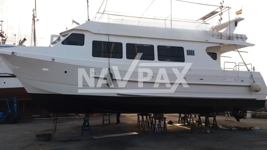 Catamarán de fibra del astillero Drassanes Dalmau.